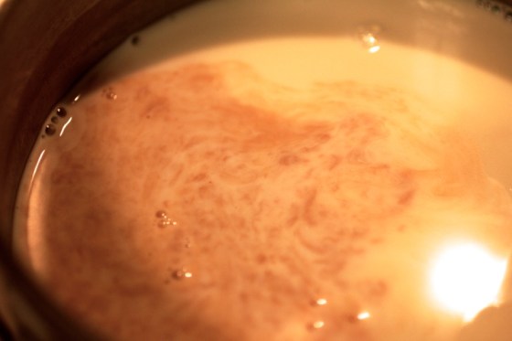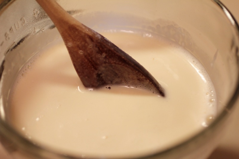 Combine the cream and the sugar over medium heat and stir. You want to make sure all the sugar dissolves, but also that your cream gets nice and hot. Yes, this happens on the stove top, but really – there’s so much less heat coming from a burner than actually having the oven on for 45 minutes! Once everything is nice and hot take the cream off the heat and stir in your vanilla.