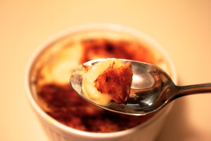 Don’t get too overwhelmed – it can take some practice to get a good crust on these. You don’t want to keep the torch in one place for too long, but you’ll also want to keep it around long enough to crisp up your sugar. I usually rotate the ramekin with one hand while moving the torch around in small circles with the other. Just try to keep everything even, and you’ll start to see the fruits of your labor fairly quickly.