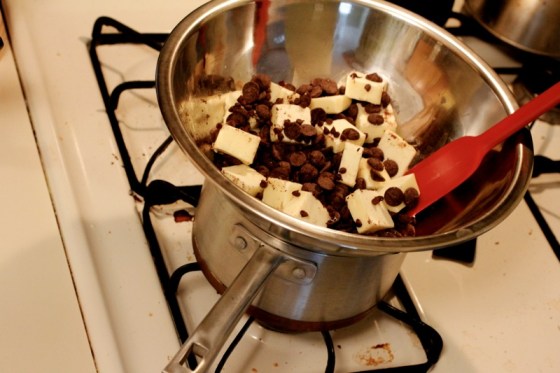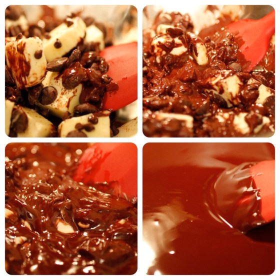 You’ll want to stir your chocolate occasionally as it melts, but don’t over do it. Over mixed chocolate can get gritty and you’re looking for silky, smooth chocolaty goodness.