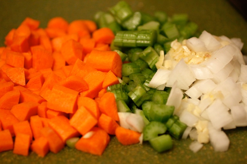 Yes – I remember mirepoix, but I took 4 years of French in high school. (Super nerd alert!) Anyway – once your beef is no longer pink add in all the veggies you just chopped.