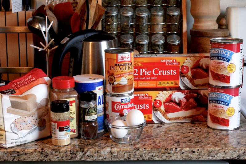 You’ll need 3 packages of pre-made pie crust for approximately 36 pies (24 pumpkin & 12 cherry).