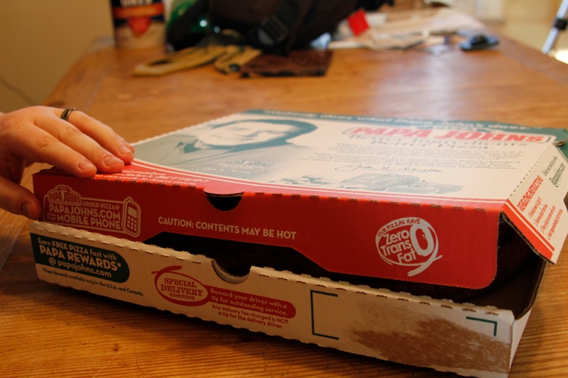 My brother & sister-in-law are expecting their first child in September, and since our families are all spread out they wanted to do something special to announce whether it would be a boy or a girl. My husband and I were lucky enough to have half of our family close by when we wanted to reveal our news about our son, but Trav & Mel (you can find her here or here) aren’t as lucky. They still wanted to include us in their joy though, and they came up with a neat little solution – PIZZA!