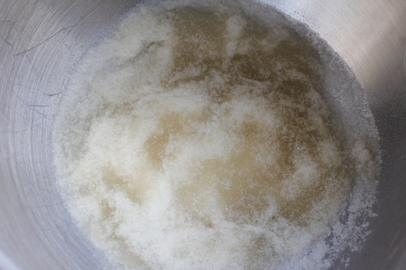 Beat egg whites and vanilla (or whatever flavoring you decided on) into sugar mixture until just combined.
