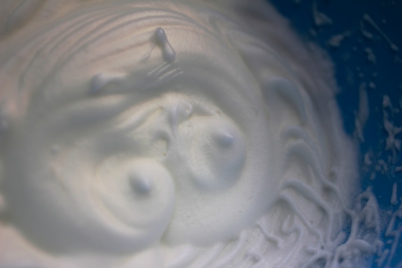 This is where a stand mixer is going to be really handy. You can accomplish the rest of this recipe without one, but it will take quite a bit of time and your arm might get tired ;) Crank your mixer to high and let it whip up until you’ve got white, thick, stiff peaks and your mixture has just about tripled in volume (about 6 minutes – longer if you’re using a hand-held mixer).