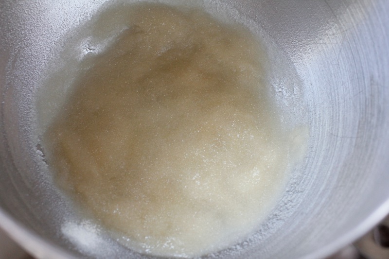 But while you’re waiting for it to get there start cooking your sugar syrup. In a medium sized heavy saucepan cook your granulated sugar, corn syrup, 1/2 cup of cold water, and salt over low heat stirring with a wooden spoon until sugar is dissolved. Increase heat to medium and boil without stirring until a candy or digital thermometer registers 240°F. You can occasionally swirl, but NO STIRRING – you wouldn’t want any sugar crystals to form and ruin you silky smooth marshmallows. Remove the saucepan from the heat and pour your sugar syrup over the bloomed gelatin, stirring until gelatin is dissolved.
